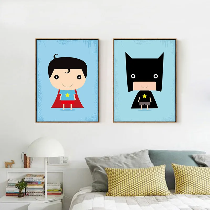 Modern Superhero Canvas Painting Cartoon Superman Batman Art