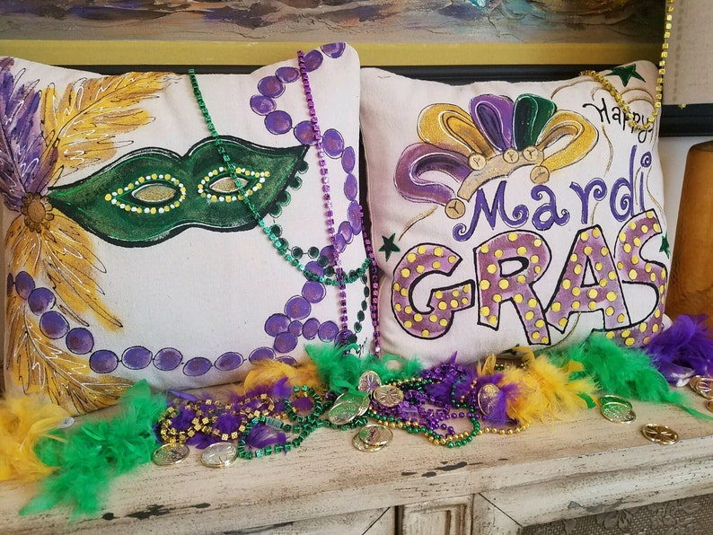 Mardi Gras Decoration Hand Painted Pillow New Orleans Etsy