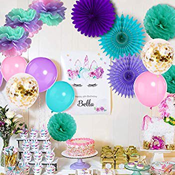 Mermaid Birthday Party Decorations Assorted Tissue Paper Fan Multi