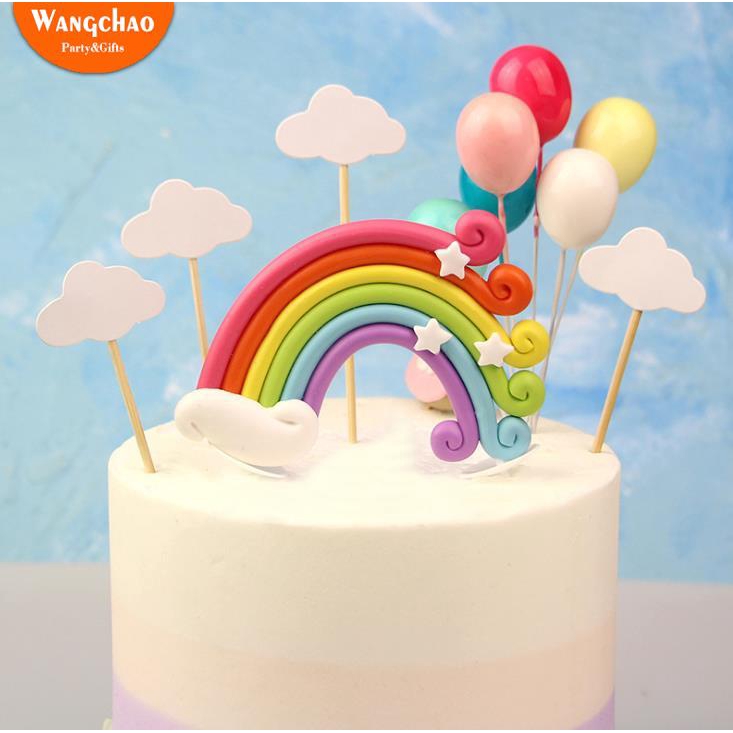 Colorful Rainbow Cake Topper Happy Birthday Kids Cake Cloud