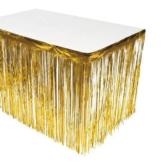 Hot 1pc Gold Green Metallic Fringe Foil Tinsel Table Skirt For