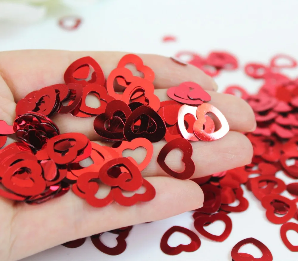 50g 10mm Ruby Red Die Cut Hollow Hearts Confetti Wedding