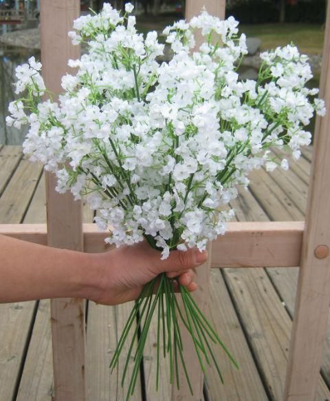 12 Bush 32 Pcs Silver Artificial Silk Baby Breath Flowers Wedding