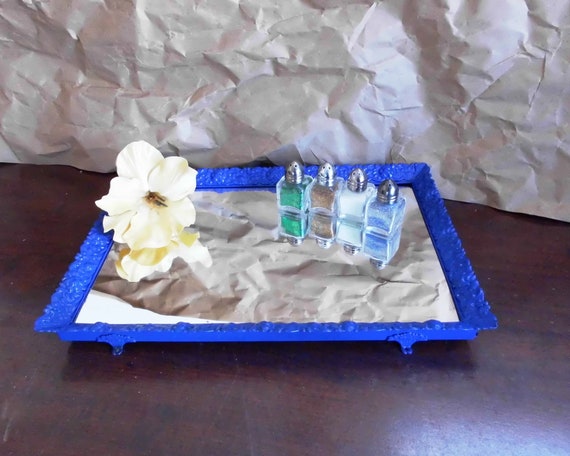 Lovely Blue Rehabbed Rectangular Vintage Mirror Tray Etsy