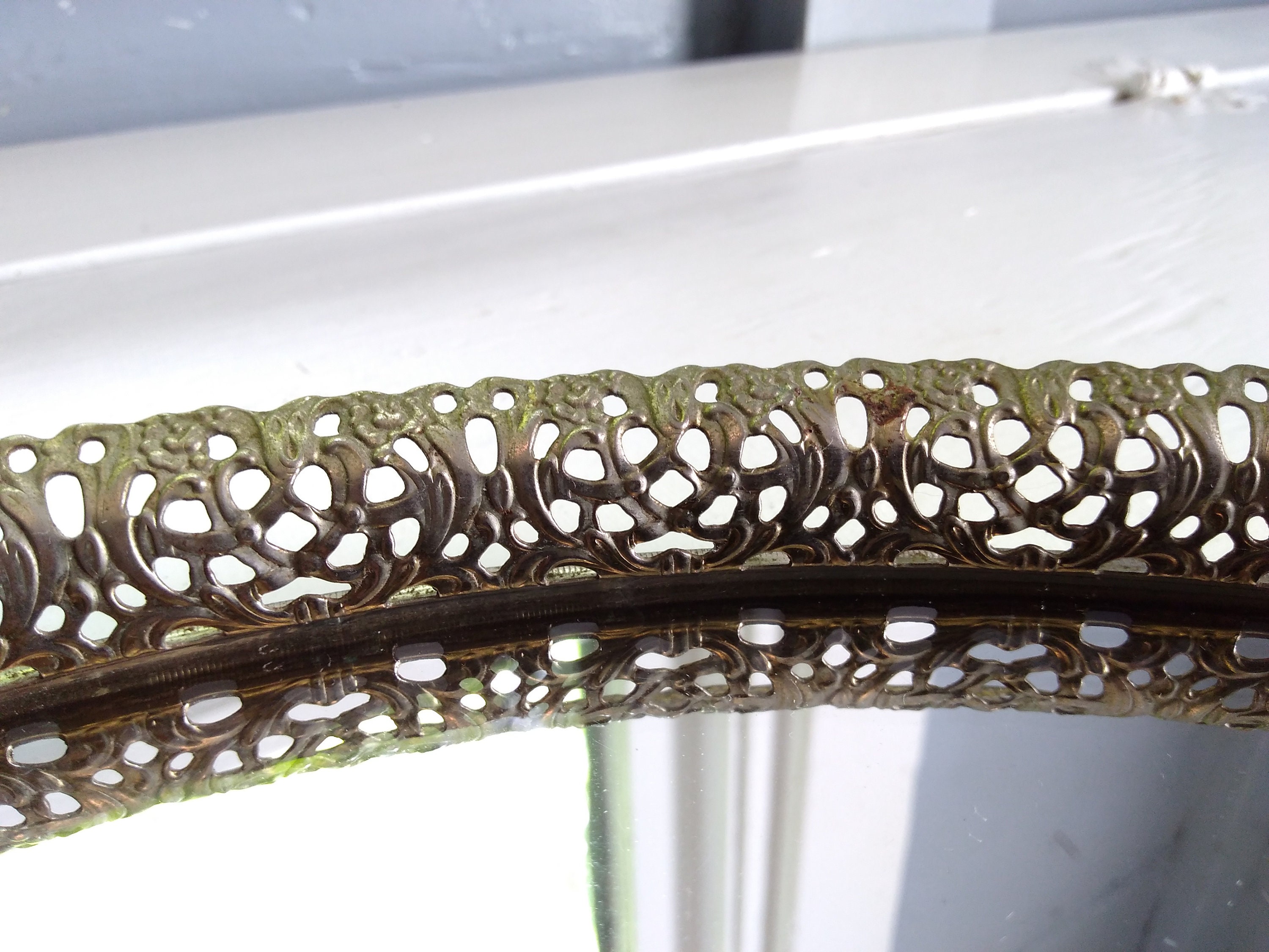 Vintage Mirror Tray Vanity Mirror Gold Oval Filigree Midcentury