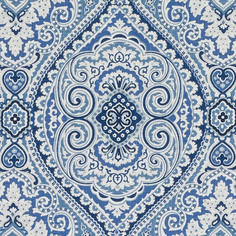 Navy Blue Medallion Upholstery Fabric Navy White Paisley Etsy