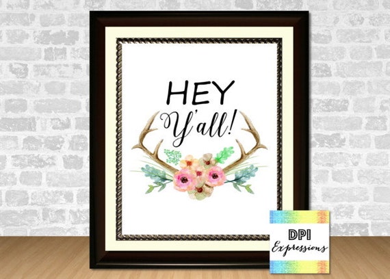 Quote Art Print Hey Y All Country Southern Art Print Country
