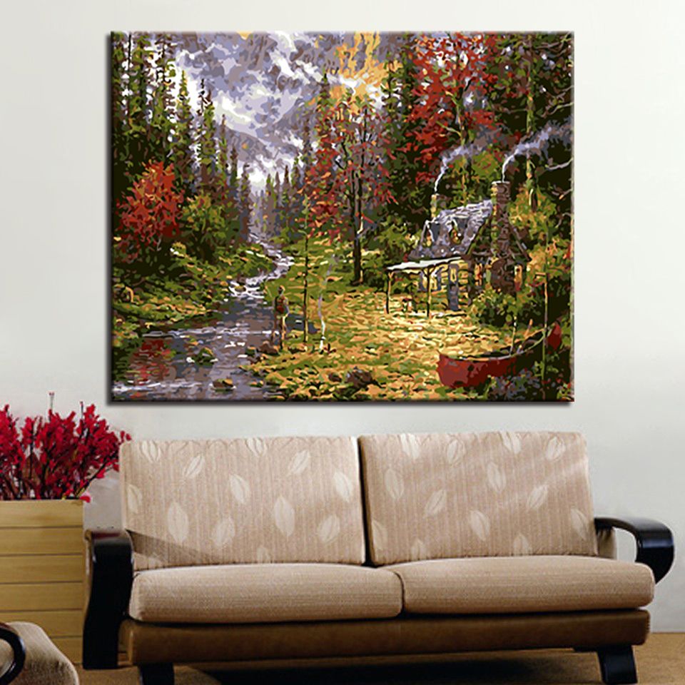 Country Town Cottage Diy Oil Painting By Numbers Coloring House