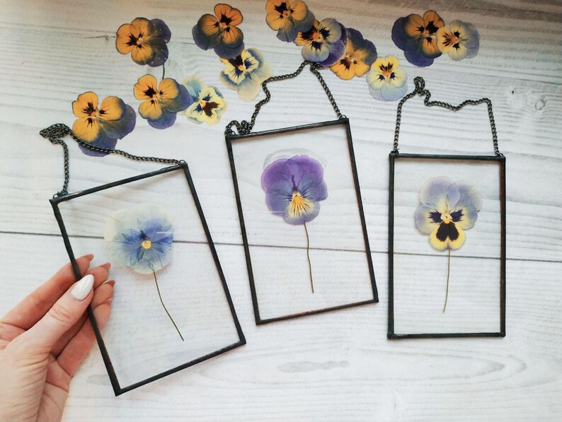 Dried Flowers Frame Pressed Pansy Hanging Flower Wall Decor Etsy