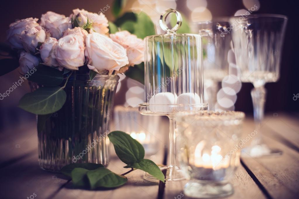 Elegant Vintage Wedding Table Decoration With Roses And Candles