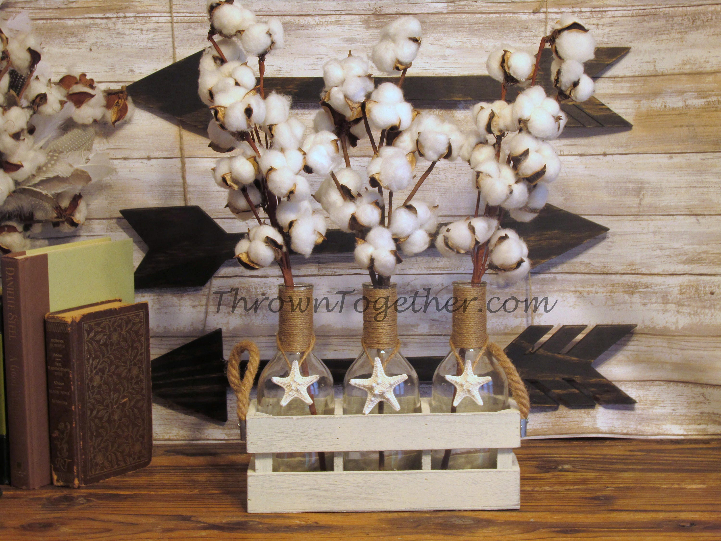Coastal Beach Decor Cotton Floral Arrangement Rustic Farmhouse
