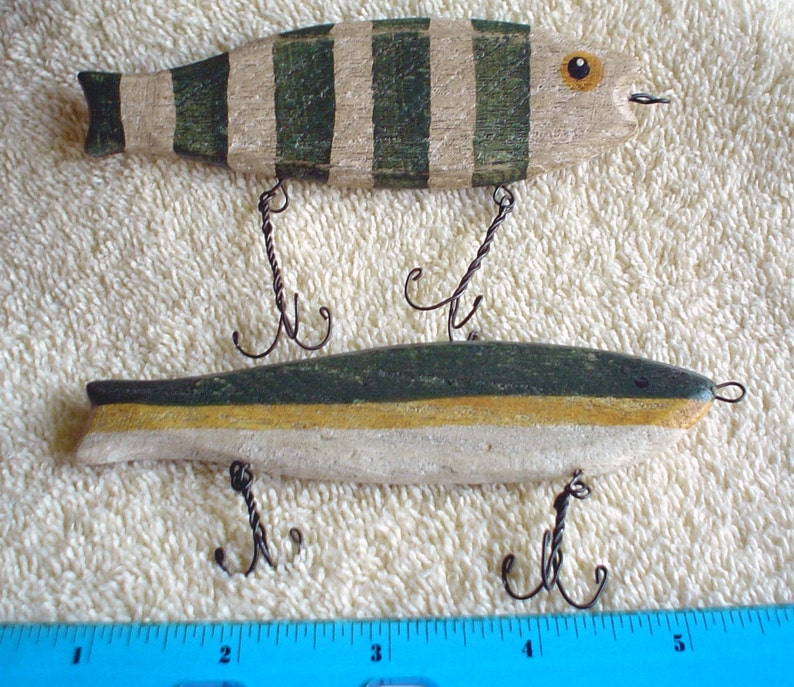 2 Wooden Fishing Lures Cabin Wall Decor Beach Decorations Etsy