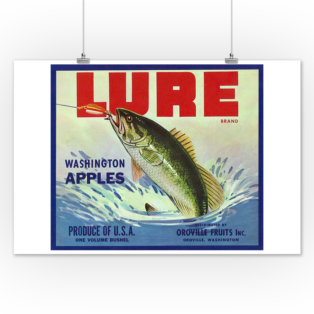 Oroville Washington Fishing Lure Brand Apple Label 12x18 Art