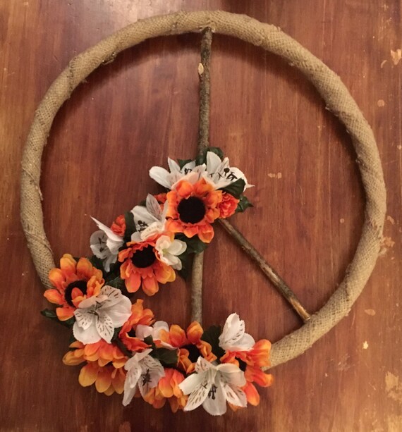 Peace Sign Hula Hoop Wreath Wall Hanging Hippie Chic Etsy