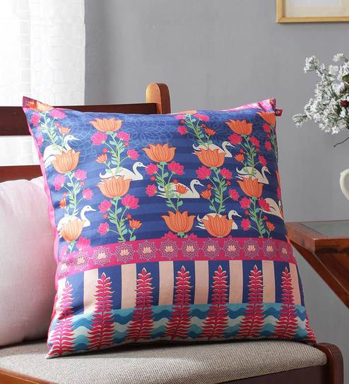 Buy Floral Pattern Silk Pink Cushion Cover 18 X 18 Inches By India