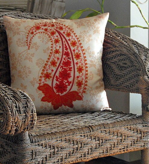Buy India Circus Tamara Red Paisley Blended Fabric Cushion Cover
