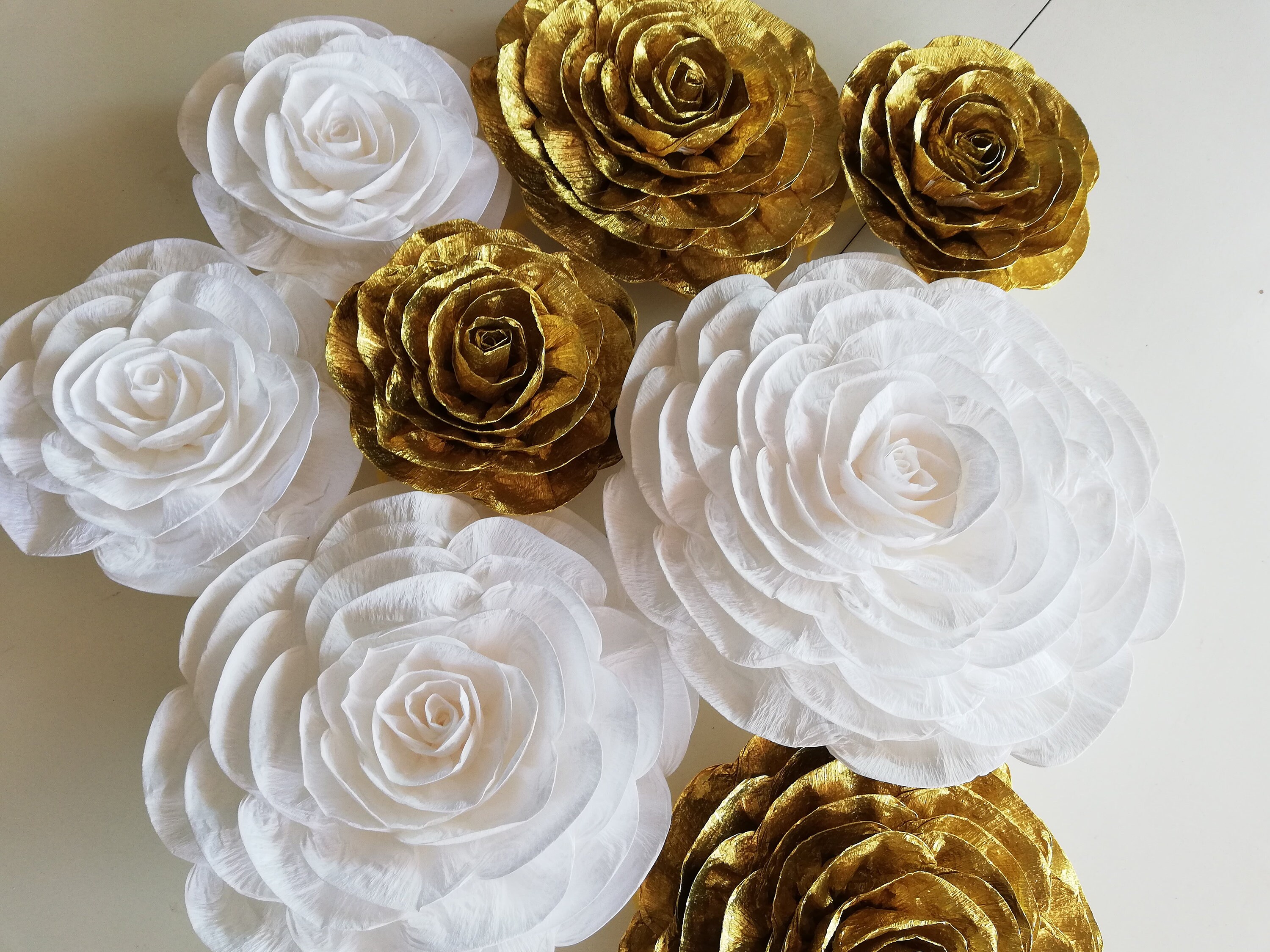 White Large Paper Flowers Wall Decor Wedding Backdrop Bridal Etsy