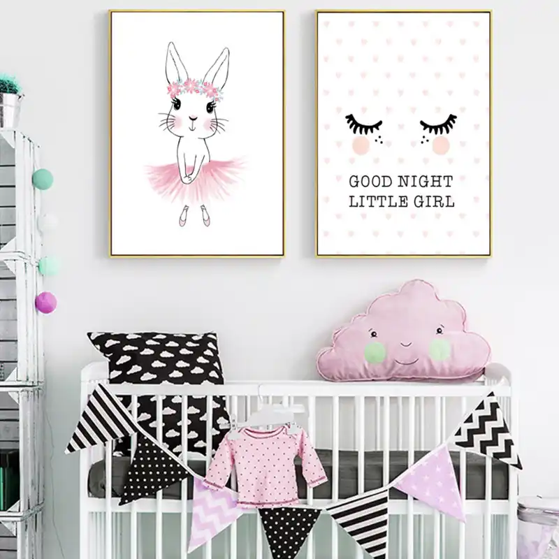 Modern Canvas Painting Cute Pink Rabbit Nordic Poster Wall