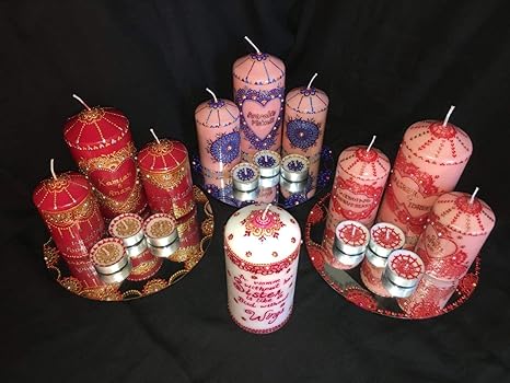 Personalised Henna Mehndi Pillar Candle Set Decoration Favours