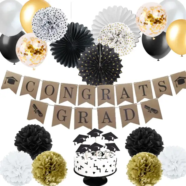 Black Gold Graduation Party Decoration Congrats Grad Banner Grad