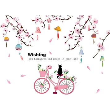 Amazon Com Ntyde Creative Wall Stickers Peach Bicycle Cat Home