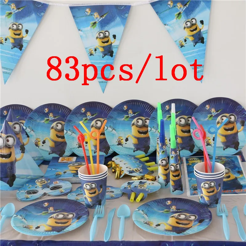 Tableware Supply 83pcs Minions Theme Boy Happy Birthday Party