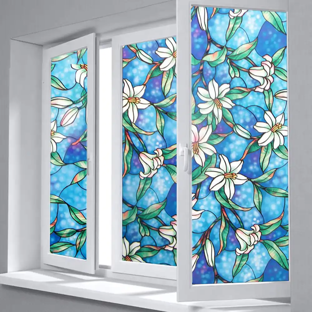 45cmx100cm No Glue Static Flower Window Film Decorative Stained