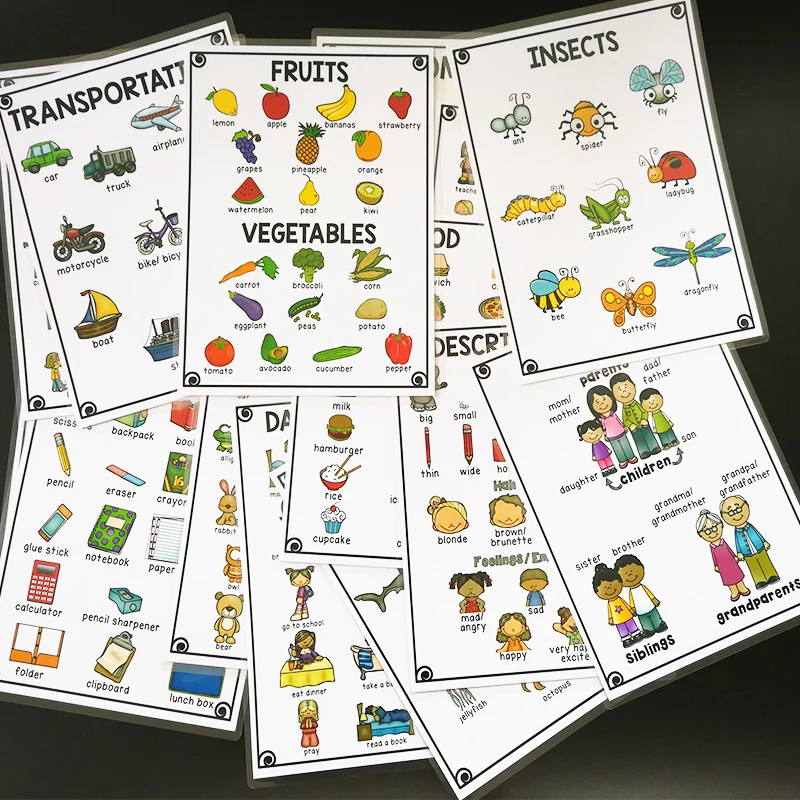 18pcs Set A4 English Words Card Cartoon Picture Poster Mind Map