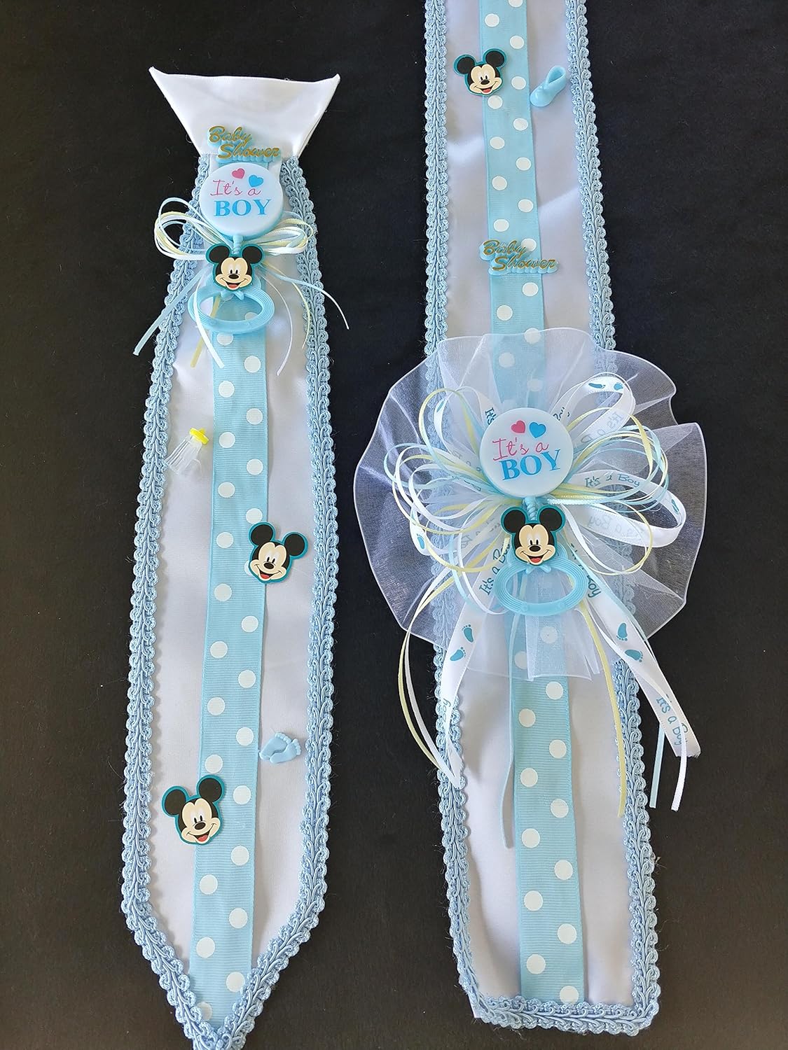 Blue Baby Mickey Mouse Baby Shower Sash Tie Set By Party