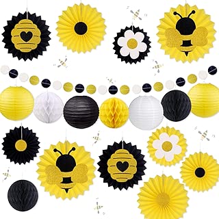 Product title bumble bee baby shower honey bees birthday party sup. Party inspo mommy to bee baby shower decorations supplies kit bumble bee decorations banner bee cake topper bee balloons for bumblebee themed party. Honey bee party decorations bumble bee baby shower hanging paper fans lanterns tissue honeycomb ball glitter circle dot garland black and yellow for birthday wedding.
