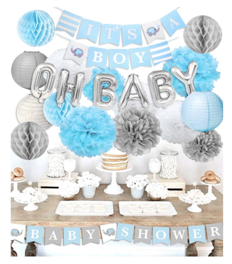 Blue Grey Boy Baby Shower Decorations Its A Boy Gender Reveal Etsy