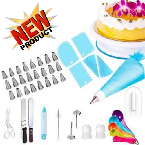 Cake decorating set with turntable. Cake turntable rotating cake stand cake leveler 32 numbered cake decorating tips 30 disposable piping bags 1 silicone icing bag 2 couplers 3 cake scrappers 2 icing spatula 1 flower nail 1 flower lifter cleaning brush 3 bags ties and cake decorating guide. Skip to main content. The price may differ greatly compared to locally sourced products.