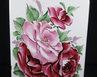 Fenton Silver Crest Melon Art Glass 8 Vase Charleton Roses 1940s
