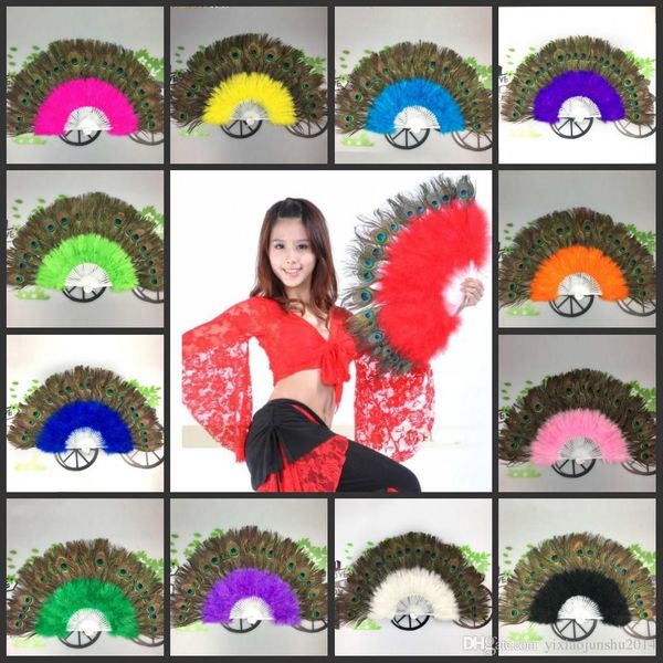 Elegant Peacock Feather Hand Fan Dance Fancy Props Dress Wedding