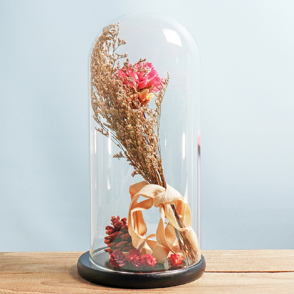 Extra Large 33x15cm Clear Glass Display Cloche Bell Jar Wooden