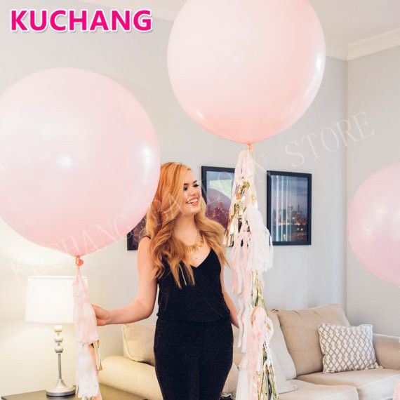 36inch Light Pink Giant Round Latex Balloon Pink Paper Tassels