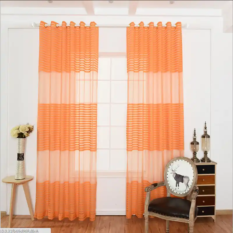 Orange Cross Striped Curtain Voile Living Room Bedroom Sheer